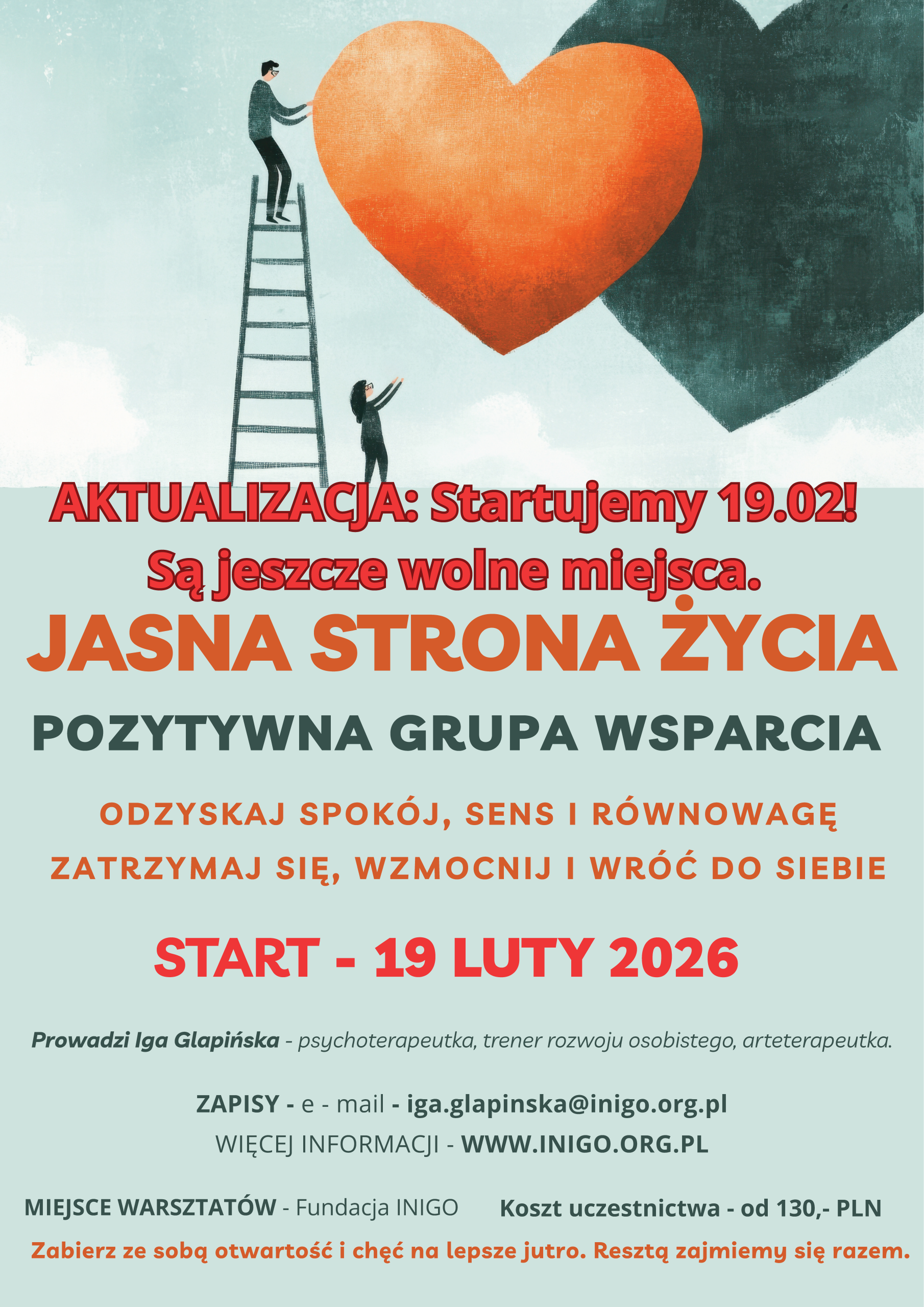 - inspirujących mini-wykładów psychologicznych nt. nadziei, sensu, odwagi, sprawczości, optymizmu, empatii, autentyczności, wdzięczności, równowagi.